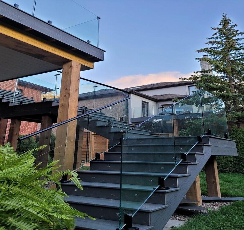 Modern glass railings create an open, elegant feel while maintaining safety and unobstructed views for decks and balconies.